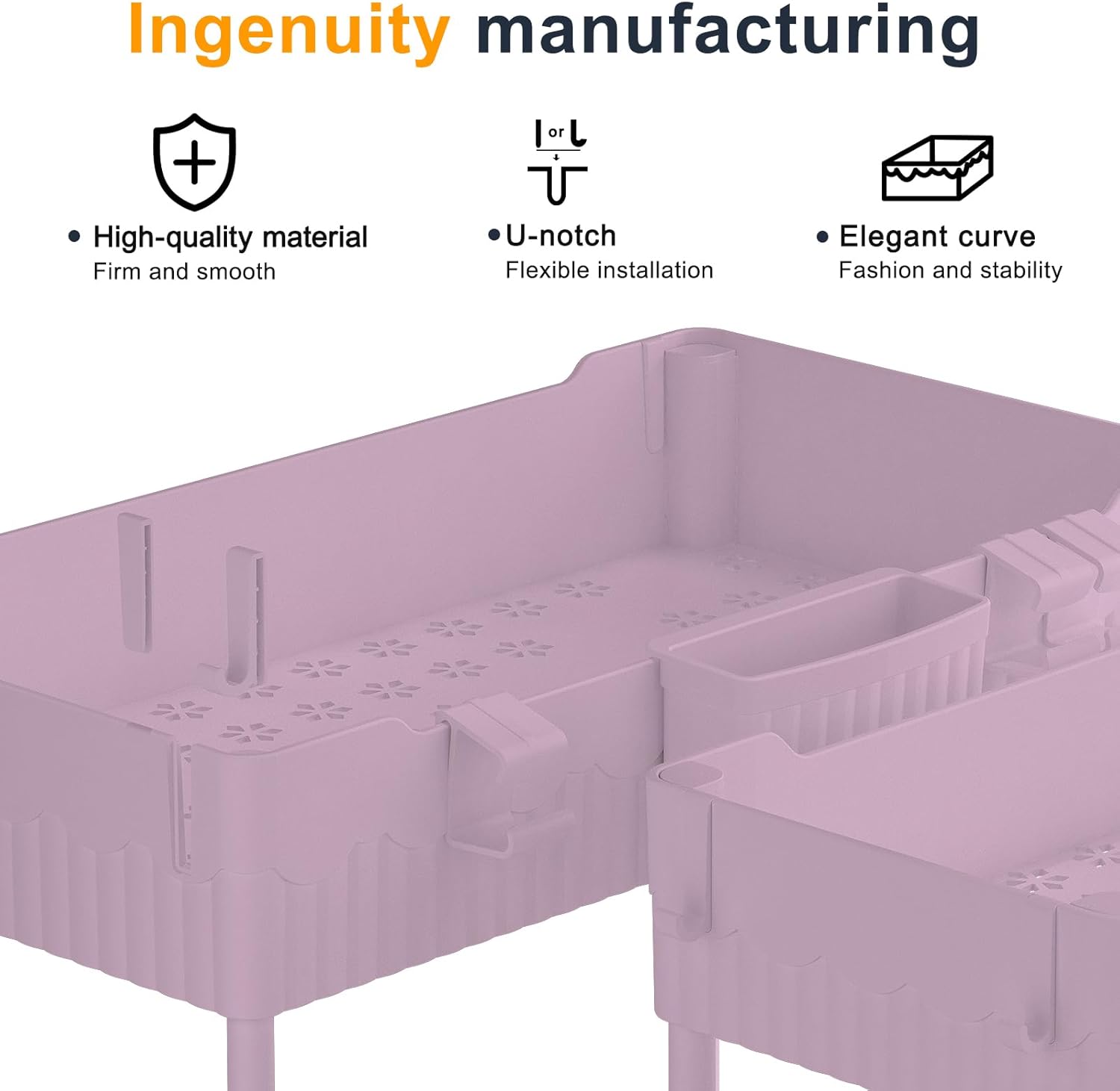 2 Pack Under Sink Organizer, Under Bathroom Cabinet Organizer with Hooks Hanging Cup, Multi-Purpose Storage Shelf for Kitchen Bathroom (Pink, XL)