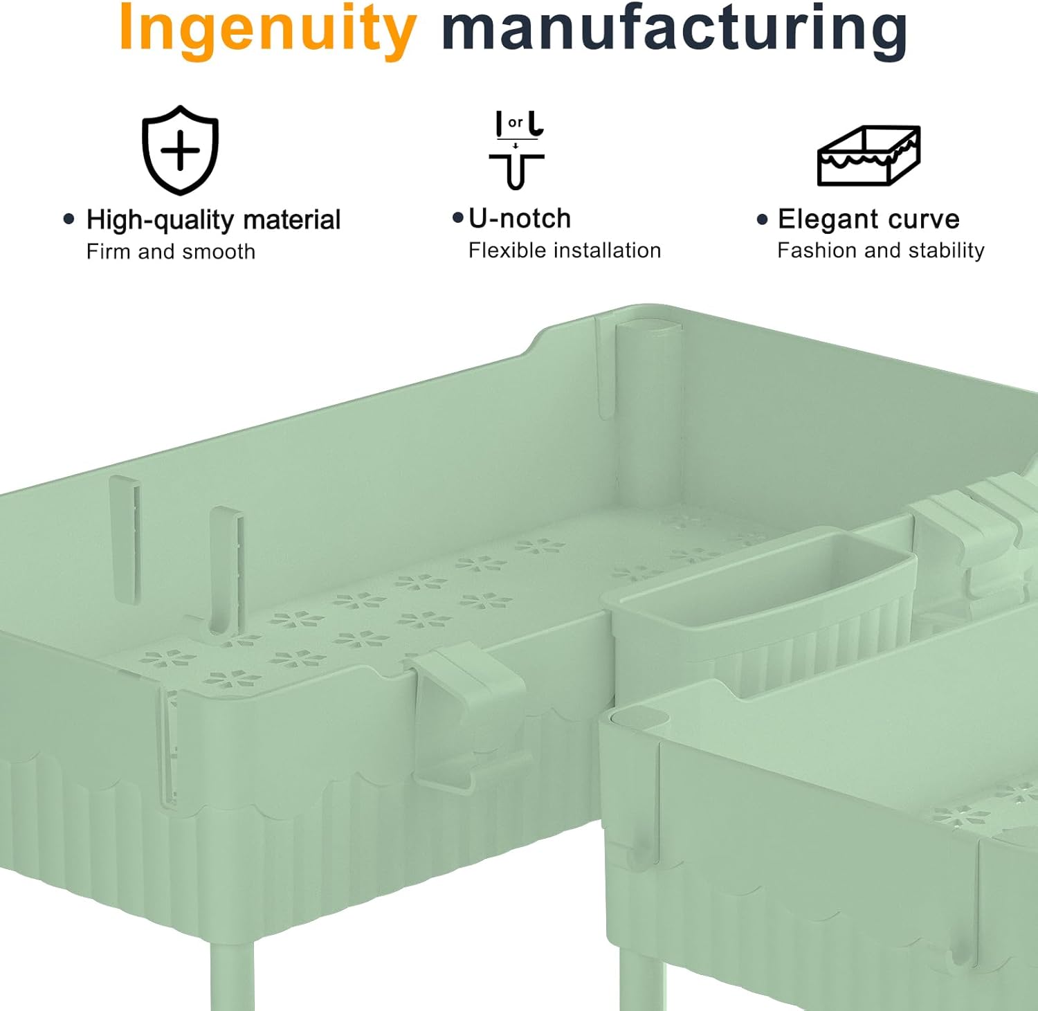 2 Pack Under Sink Organizer, Under Bathroom Cabinet Organizer with Hooks Hanging Cup, Multi-Purpose Storage Shelf for Kitchen Bathroom (Green, XL)