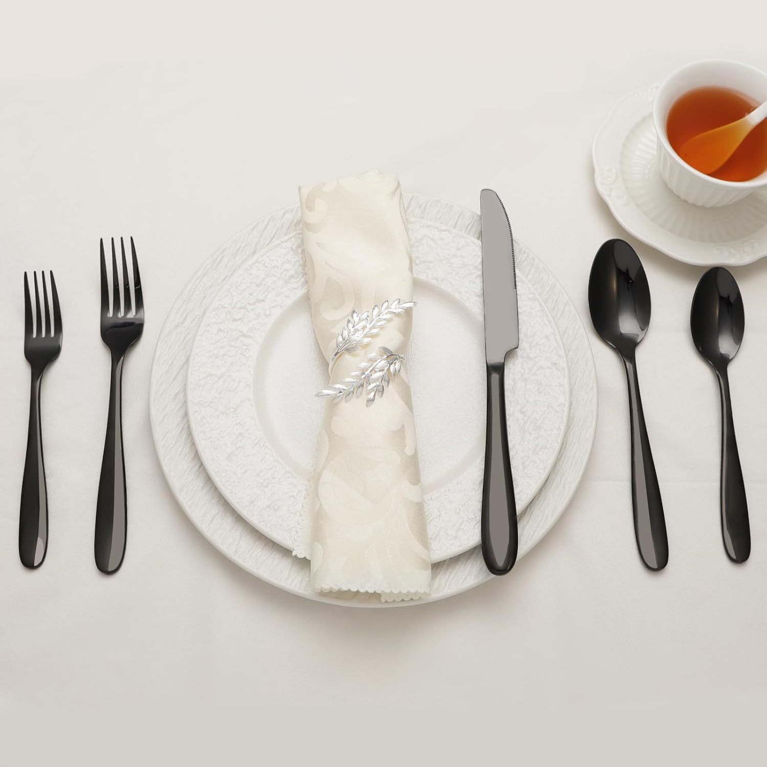 40-Piece Black Silverware Set, Flatware Set for 8, Food-Grade Stainless Steel Tableware Cutlery Set, Mirror Finished Utensil Sets for Home Restaurant, Forks Spoons and Knives Set, Dishwasher Safe