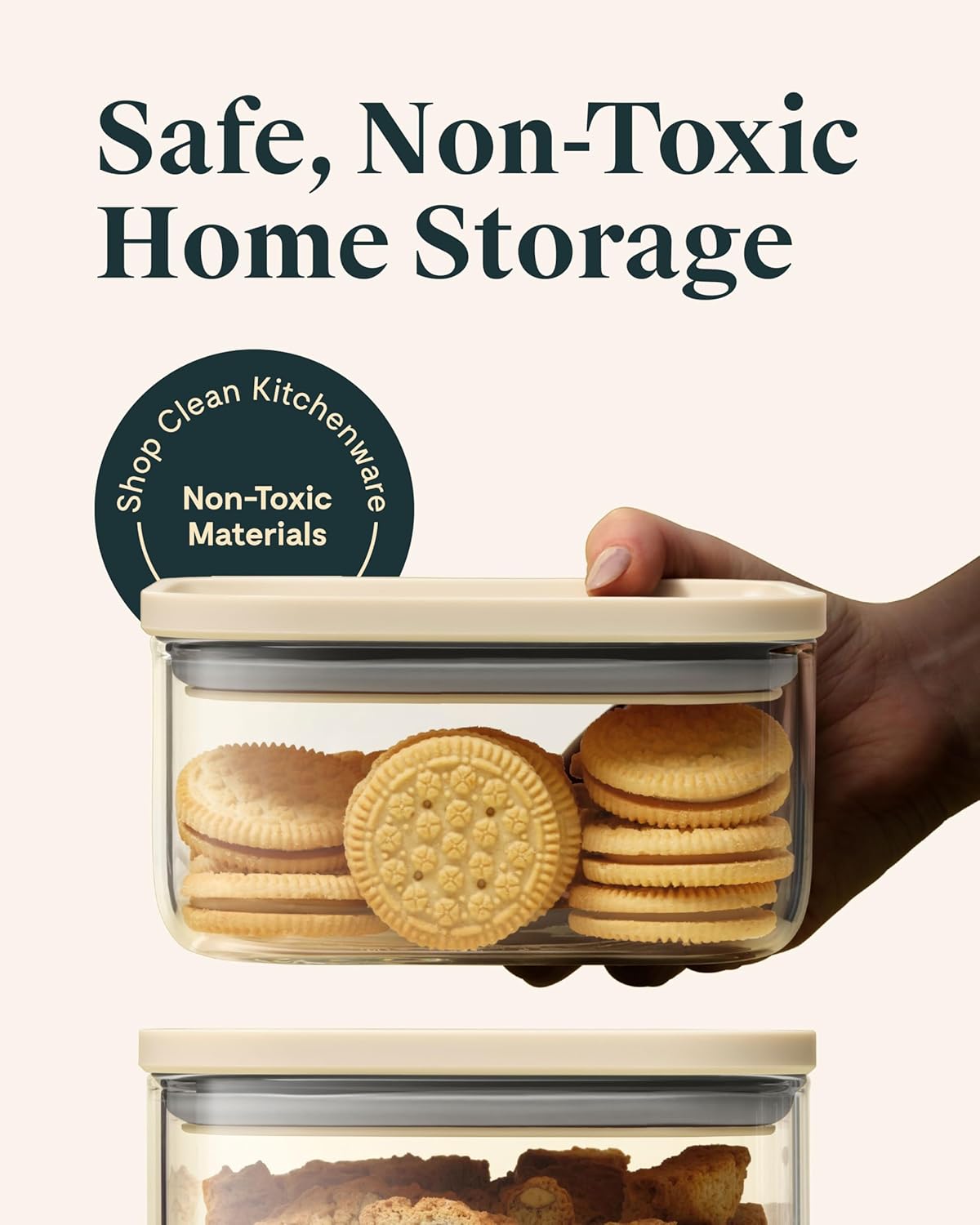 • SAFE & NON-TOXIC MATERIALS: Made from durable, high-resistance glass and free from BPA, BPS, PFAS, and other forever chemicals—these airtight containers for food storage keep your ingredients clean, safe, and chemical-free.