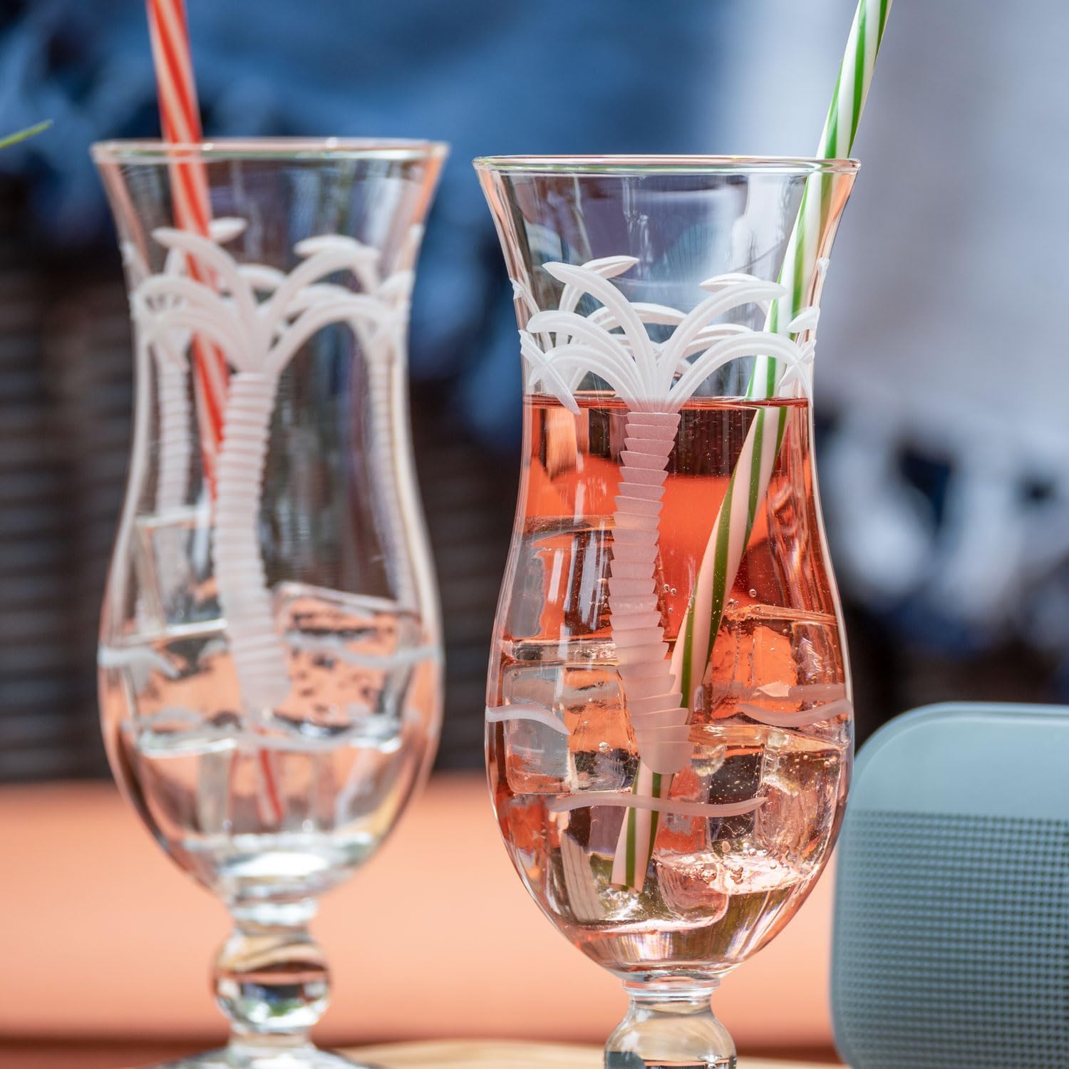 • COASTAL-INSPIRED DESIGN: Each glass showcases a beautifully engraved palm tree motif, bringing a beachside elegance to your dining experience.