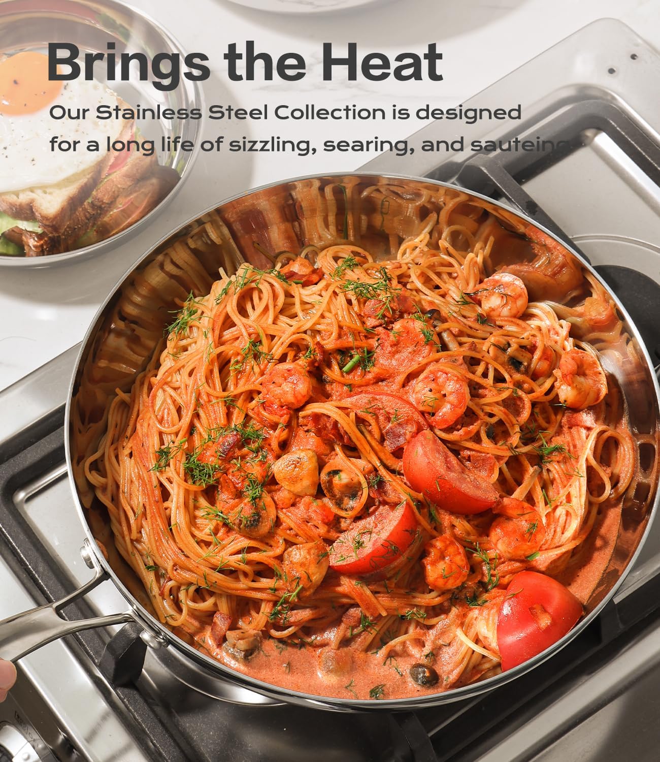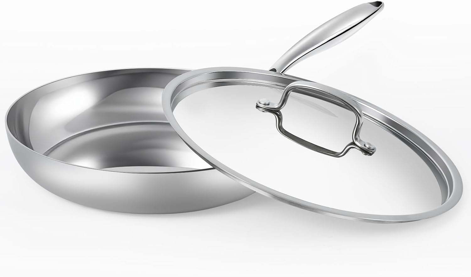 • 【Pan & Lid Included – All In One Set】Get cooking right out of the box! Useluck Tri-ply Stainless Steel Frying Pan comes with a matching Stainless Steel Lid. From eggs and pancakes to steak and stir-fries, it's your complete kitchen solution—the only frying pan you'll ever need.