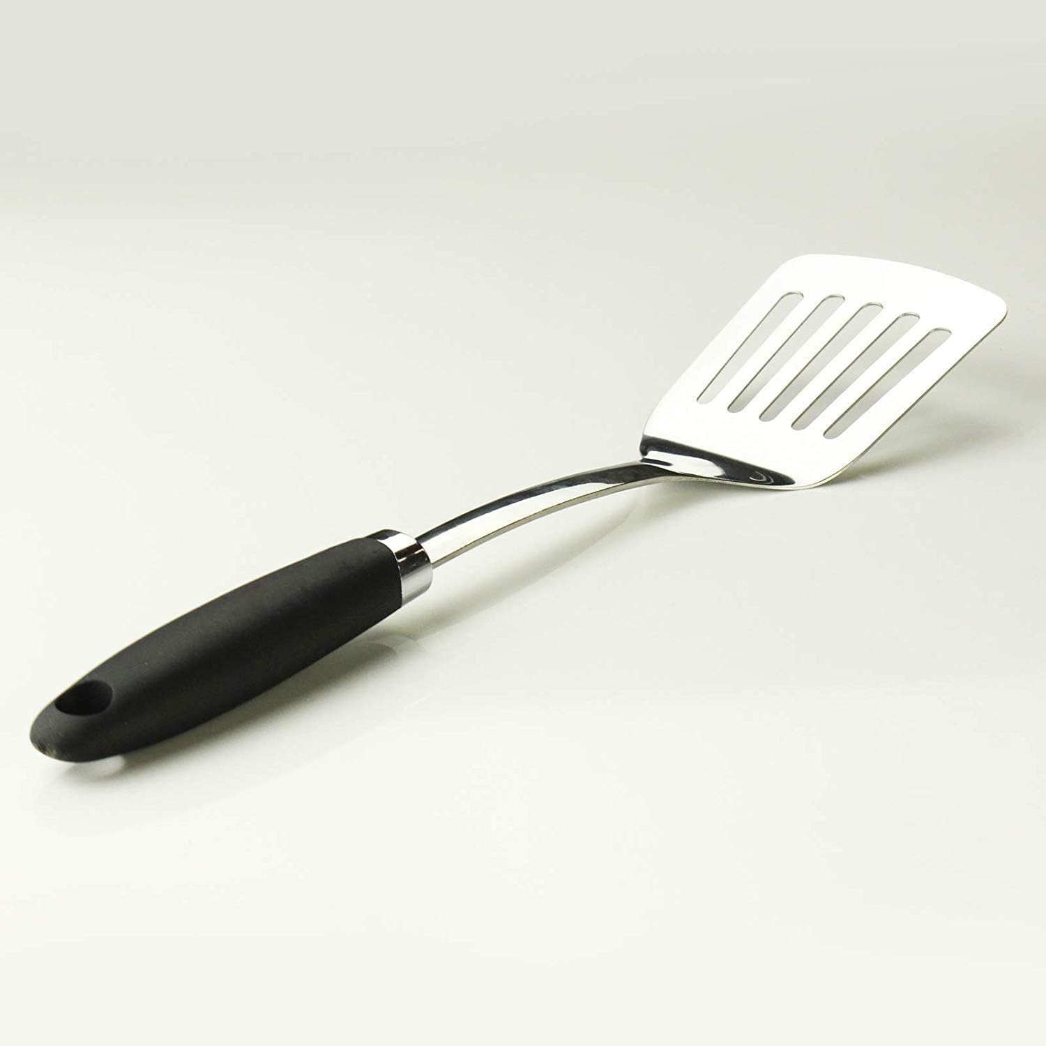 • The Most Thoughtful Design: 13 Inch length provides enough distance from the pan and slips under food easily when control to flip foods. The handle is made of silicone with non-slip and heat-resistant, which keeps you from getting burned while cooking.