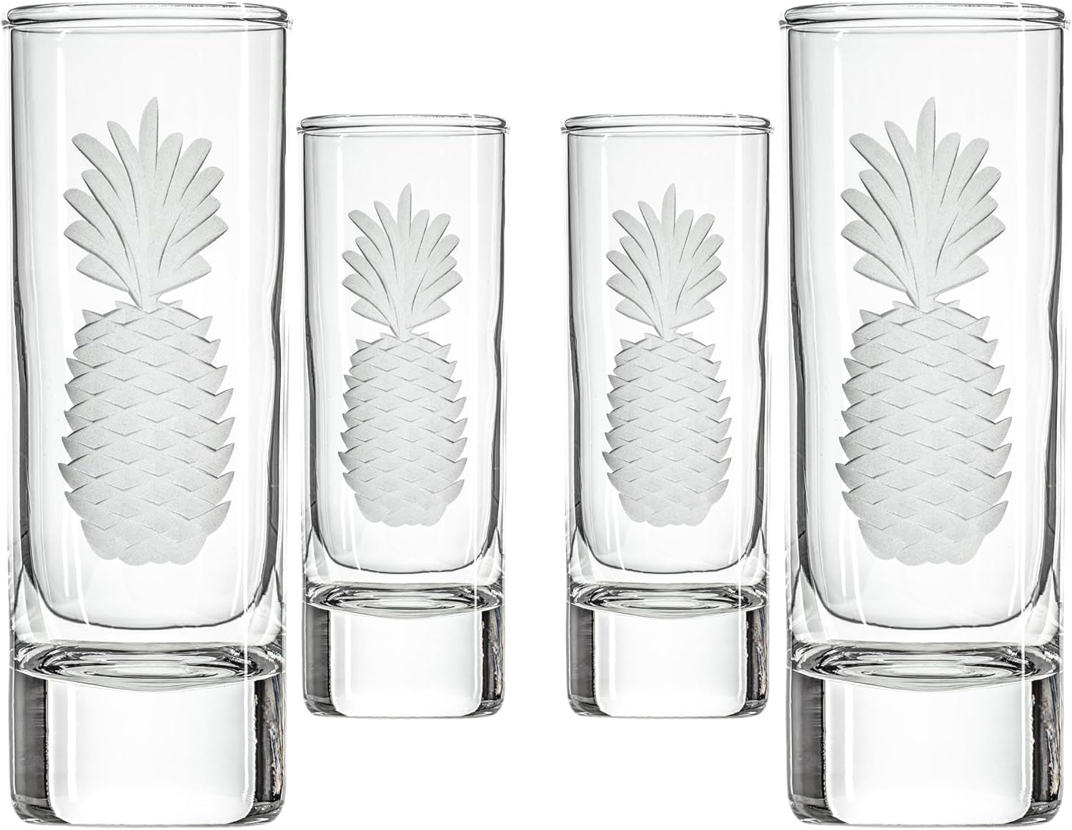 Rolf Glass Fresh Pineapple Shot Glass | 2.5oz Engraved Glass Cordial | Spirits or Tequila Sipper | Tropical Sand-Etched Pineapple Design | Lead-Free | Made in the USA | Set of 4