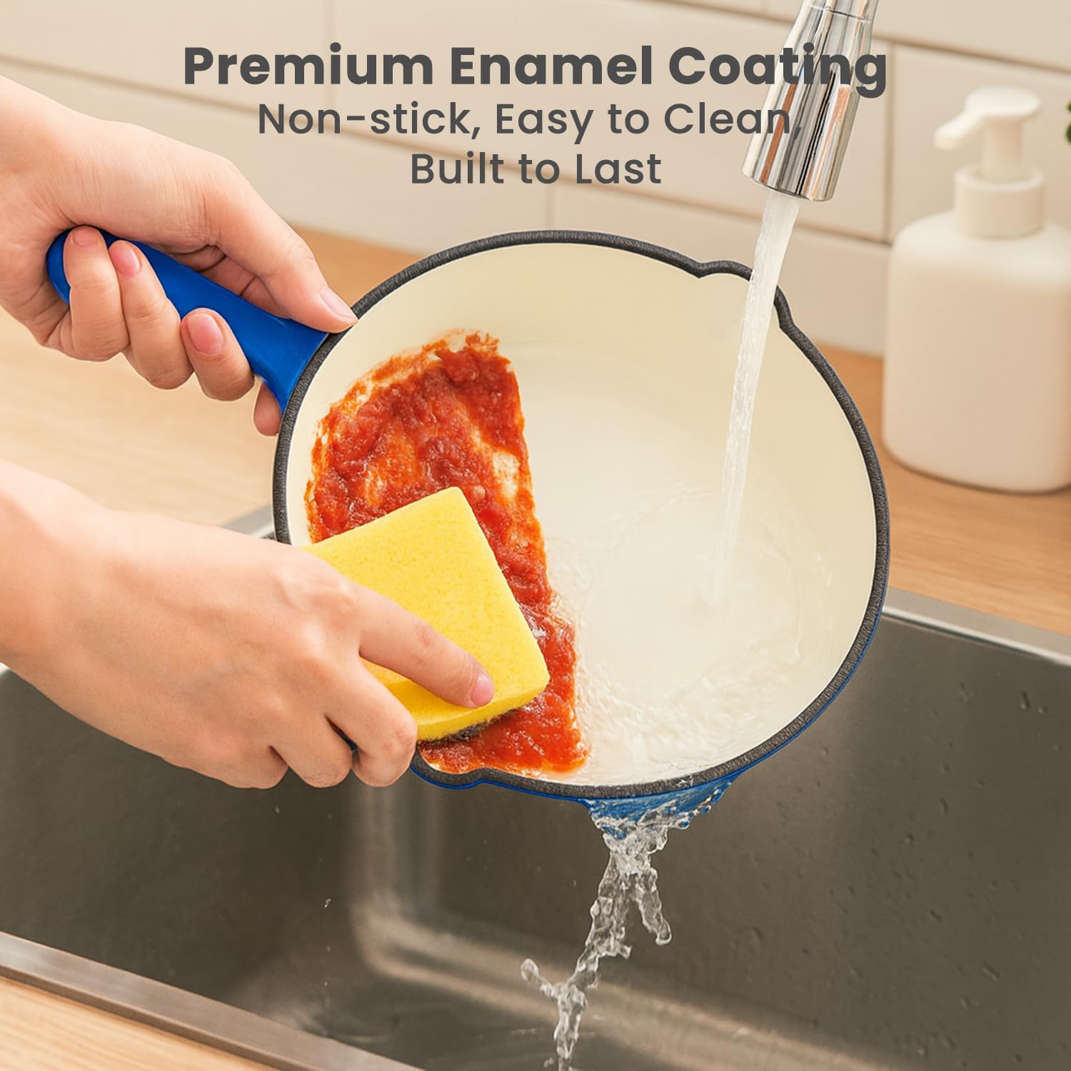 • 【Easy To Cook And Clean】The smooth porcelain enameled interior reduces sticking and aids caramelization. While it's dishwasher-safe, hand-washing with warm soapy water and a nylon brush keeps your enameled cast iron cookware set looking brand new for years. This set truly transforms your cooking and dining experience