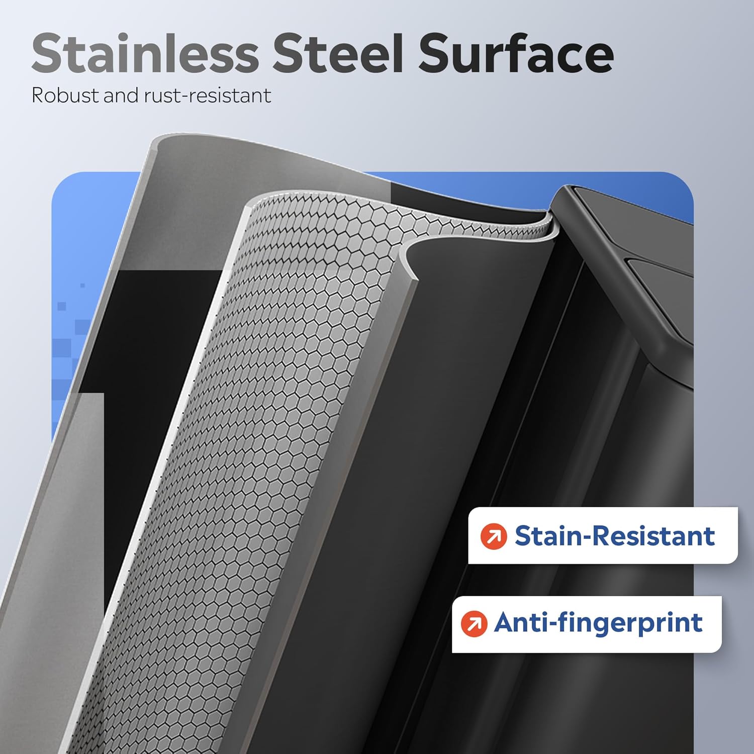 • 【Odor-Resistant and Family-Safe Construction】A built-in deodorizing filter box effectively traps odors, while rounded corners prevent accidental bumps—making it child-friendly. The fingerprint-resistant stainless steel surface stays smudge-free for a sleek, modern look that complements any kitchen decor.