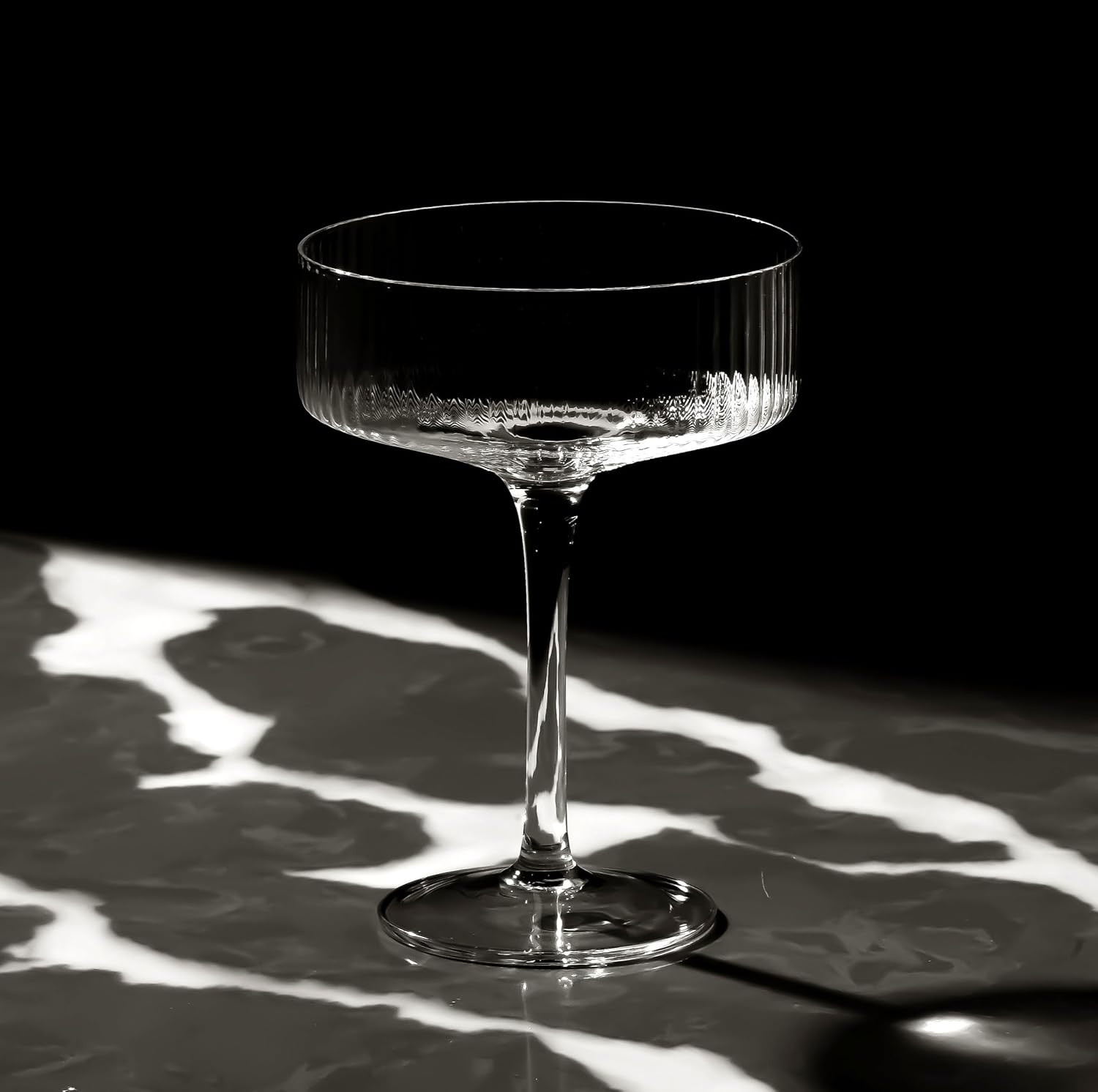 LEMONSODA Clear & Ribbed Martini Coupe Glasses - Classic Barware for Espresso Martini, Manhattan, Cosmopolitan – Handcrafted Luxury Glassware for Home Entertaining (Ribbed 9.5oz, Set of 4)