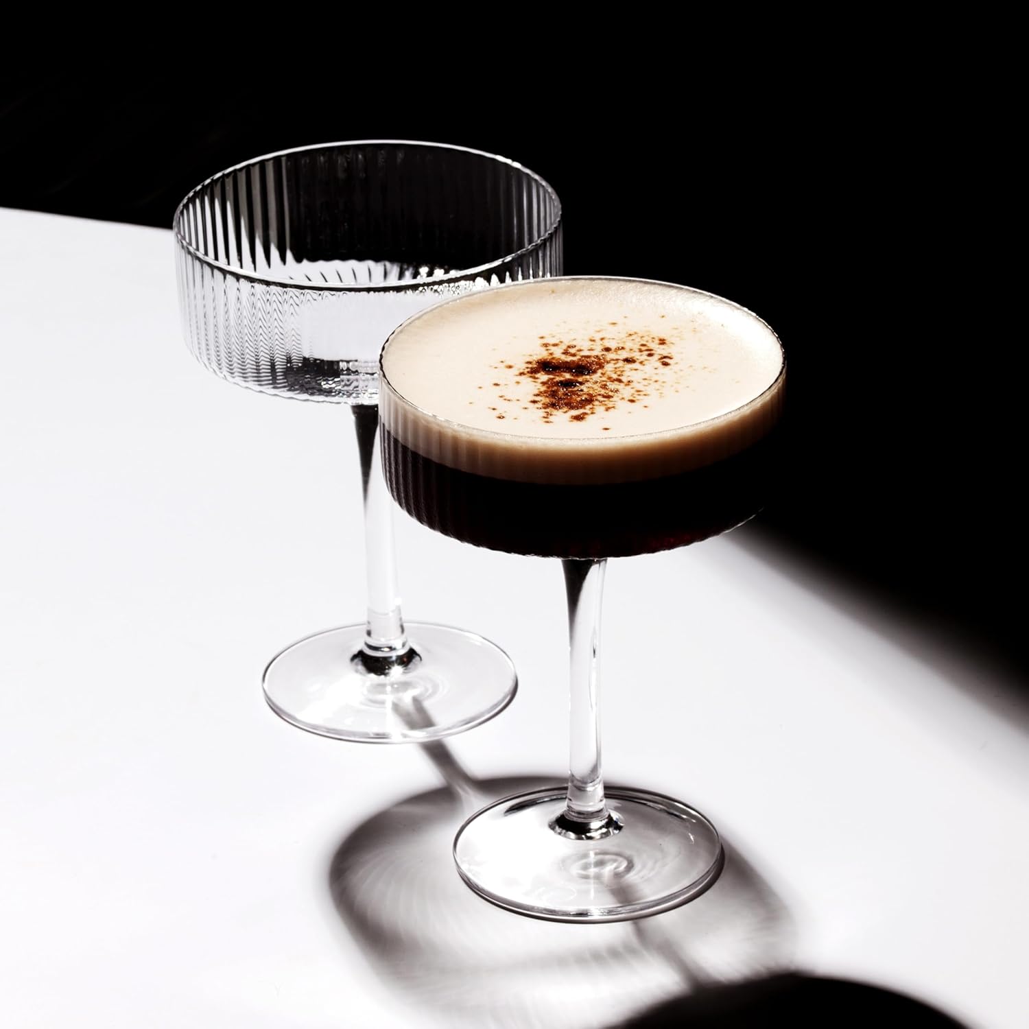 • ELEGANT DESIGN: Featuring a sleek, slender silhouette with a stem, these glasses offer a refined drinking experience for espresso martinis, classic cocktails, or any mixed beverages. Their elegant shape ensures an upscale presentation, ideal for parties, toasts, or stylish evenings.