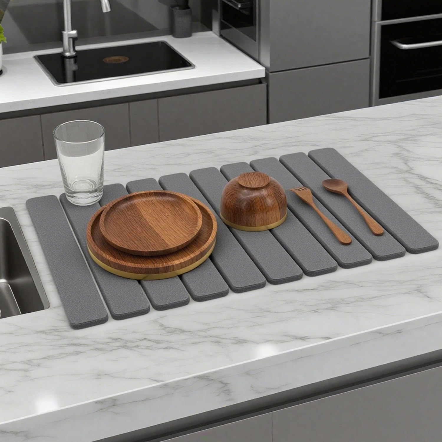 • Foldable & Space-Saving: Our stone drying mat kitchen features a collapsible design that folds down small, so your stone kitchen drying mat fits neatly in compact storage spaces. Handle big cookware in small spaces with this dish drying mat stone, saving 70% space over racks ideal for RVs or small kitchens fast drying dish mat.