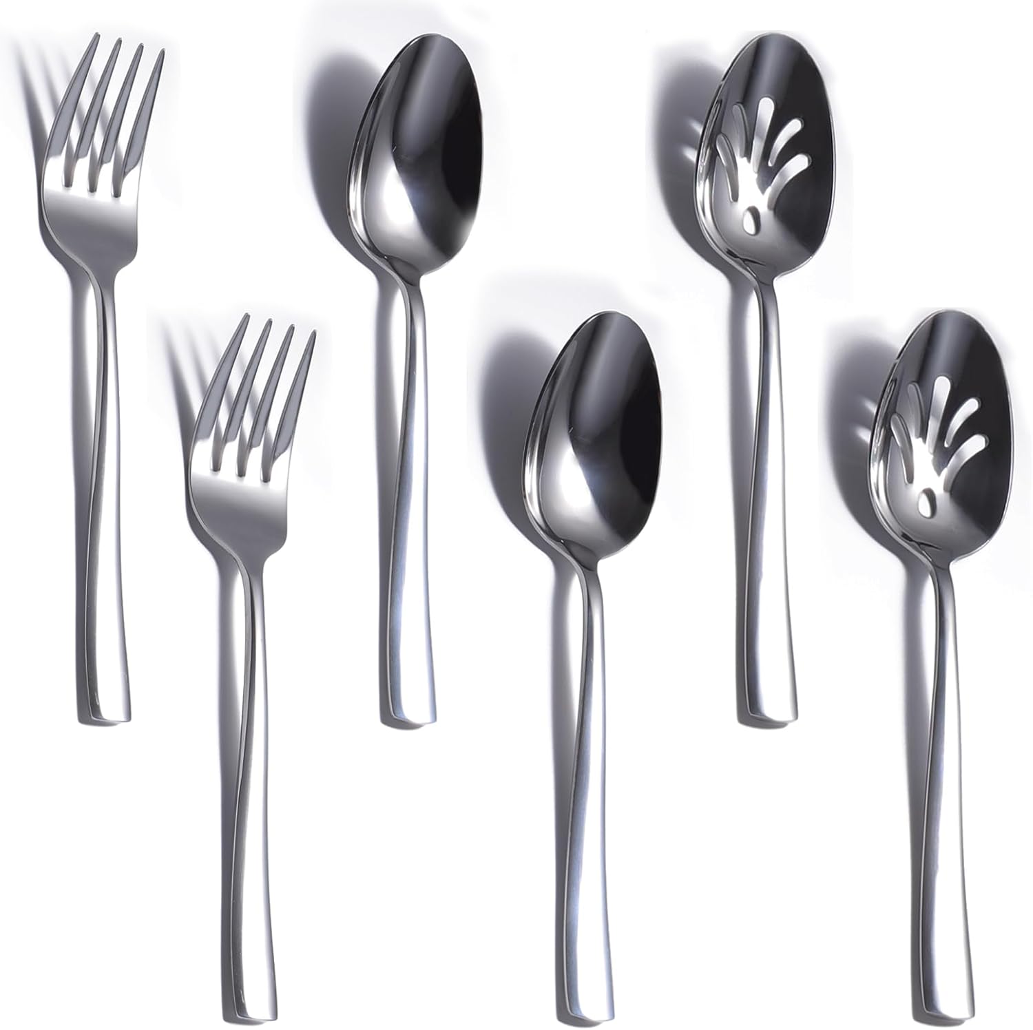 • Serving Utensils Set for 6: 9" Serving spoons x 2, slotted spoons x 2, serving forks x 2 which was designed for family meals, parties and casual entertaining meals.
