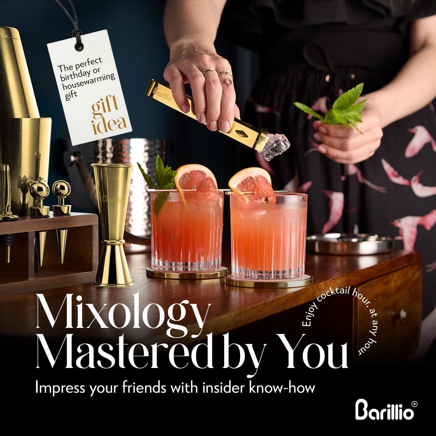Barillio Gold Bartender Kit – 23-Piece Stainless-Steel Cocktail Shaker Set with Premium Acacia Stand | Martini Barware Mixing Tools for Home Bartending | Gift Set