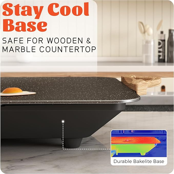 • 3 Years Durable Nonstick: Ultimate Granite Nonstick Coating,Experience 8x more durable than standard coatings *vs typical ceramic electric griddles