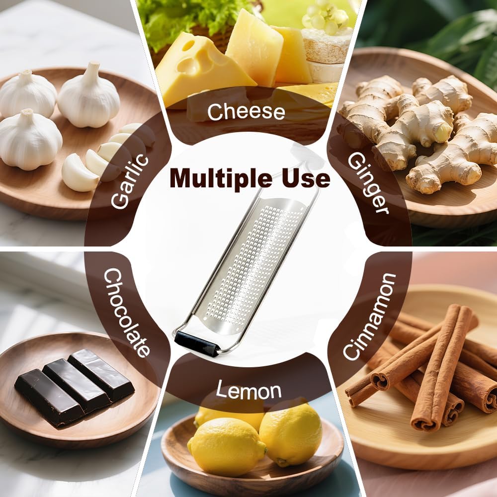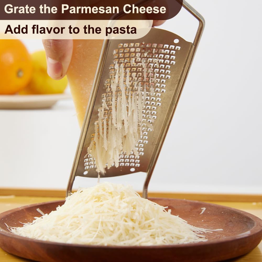 • Enhance the Flavor of the Food:Grated the parmesan cheese into the fine strands with an grater, then add the cheese strands to the pasta, a unique-flavored pasta dish is ready!It can also grate the lemons, chocolate, ginger, garlic, and cinnamon.