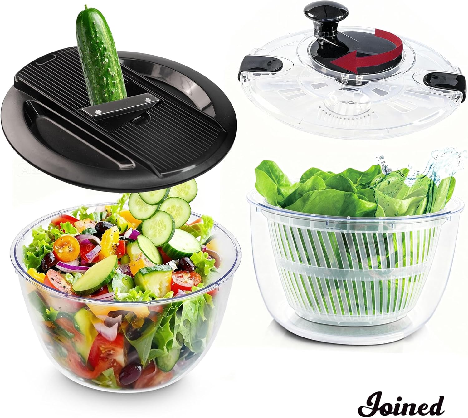 Joined Large Salad Spinner and Mandoline Slicer 6 in 1, Multi-Use Lettuce Spinner with Drain, Bowl, and Colander, Vegetable Dryer, Kitchen Slicer for Healthy Cooking, Perfect Holiday Gift - 5.28 Qt