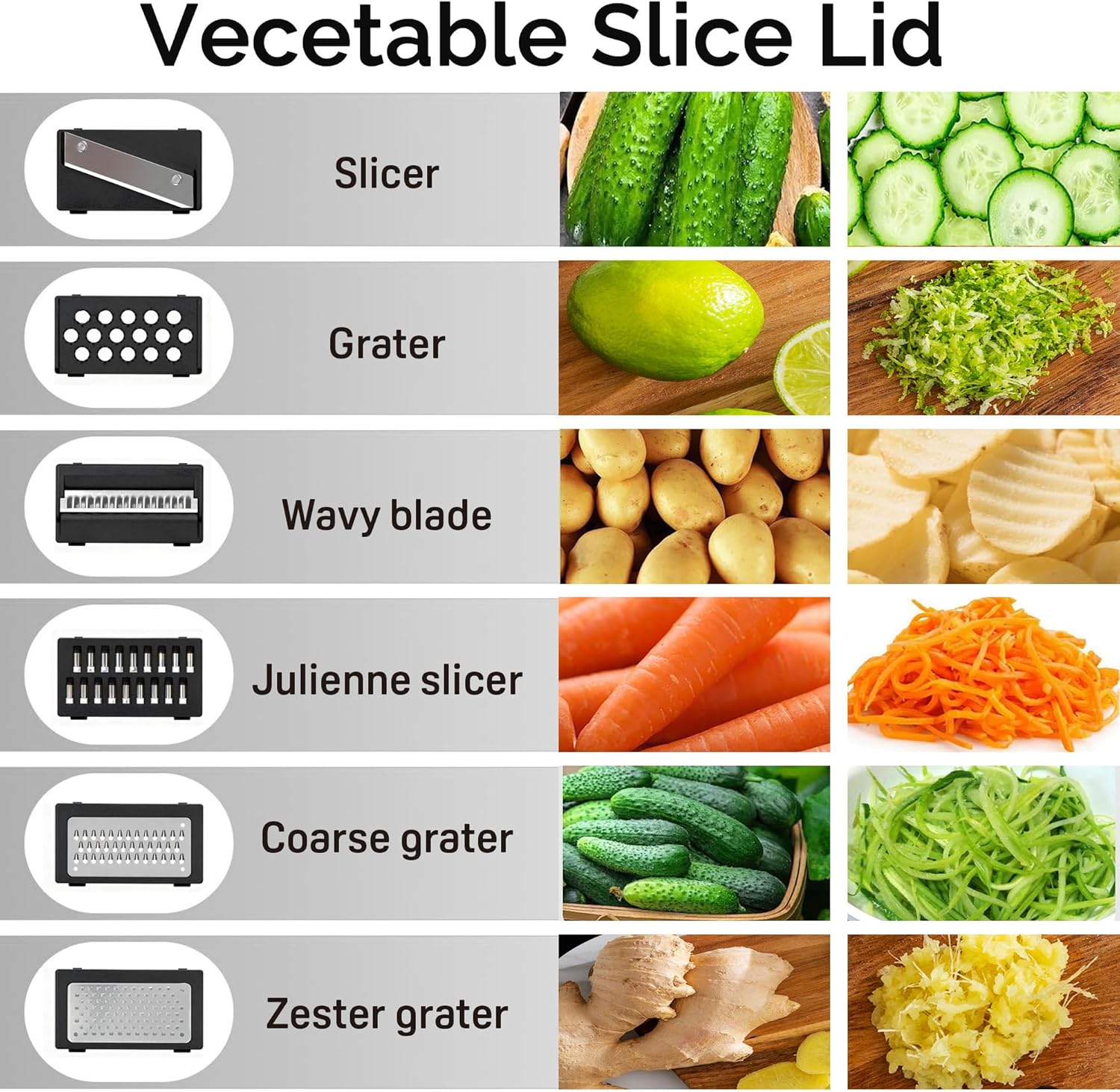 • [6 Precision Blades with Organized Storage]Slice, dice, julienne, and grate with professional results! The set comes with 6 interchangeable blades (shredder, wavy, straight, etc.) and a dedicated storagr case. Keep all blades safely organized and protected, ensuring longevity and convenience right at your fingertips.