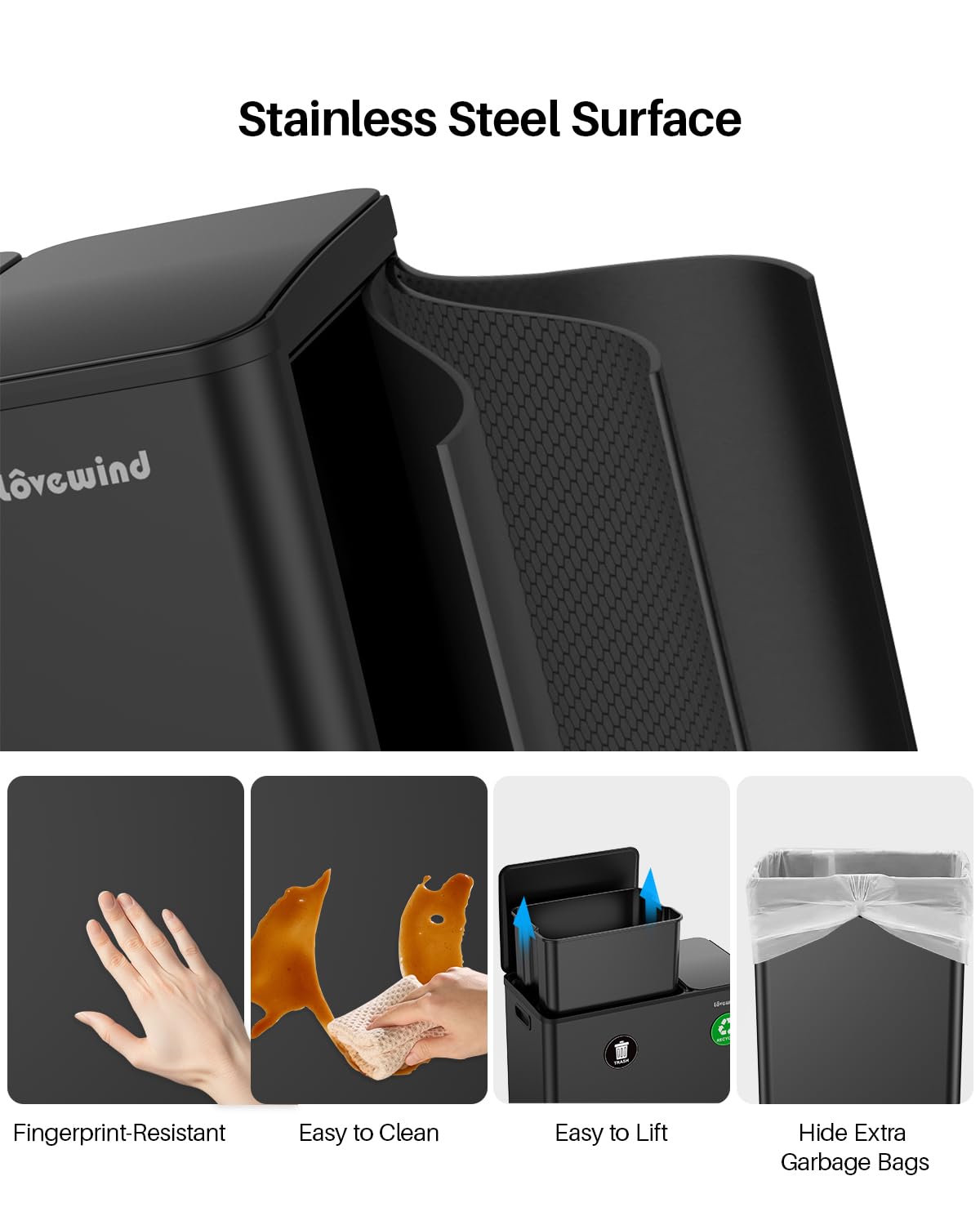 • Stainless Steel Construction: Lovewind double trash can is made of high-quality stainless steel, which is durable, easy to clean, and anti-fingerprint, making it an ideal choice for your kitchen