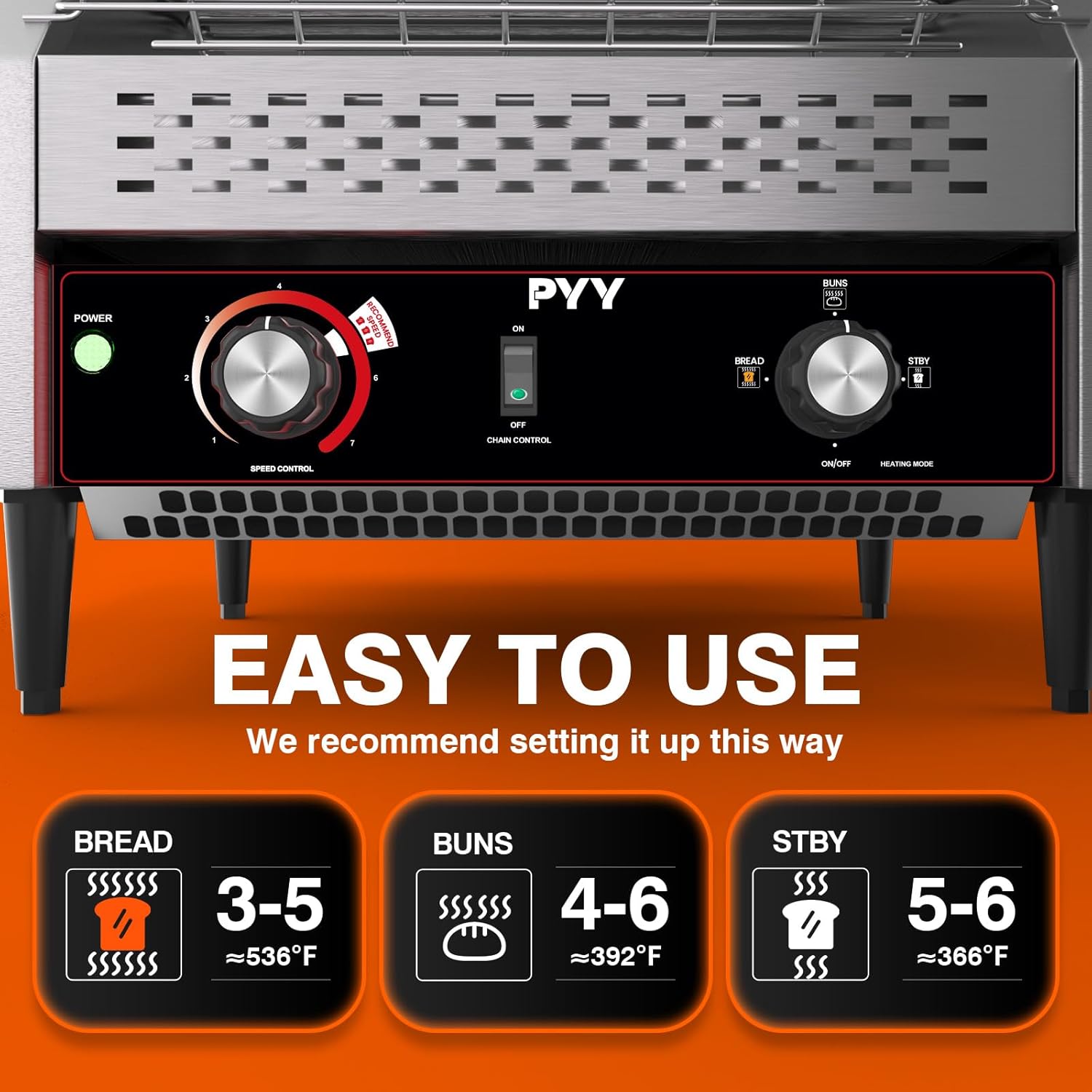PYY Commercial Conveyor Toaster 450 Slices/Hour, Electric Conveyor Belt Toaster for Toast, Bun, Bagel, Bread, Heavy Duty Stainless Steel Toaster Oven for Restaurant, Bakery, Buffet Use