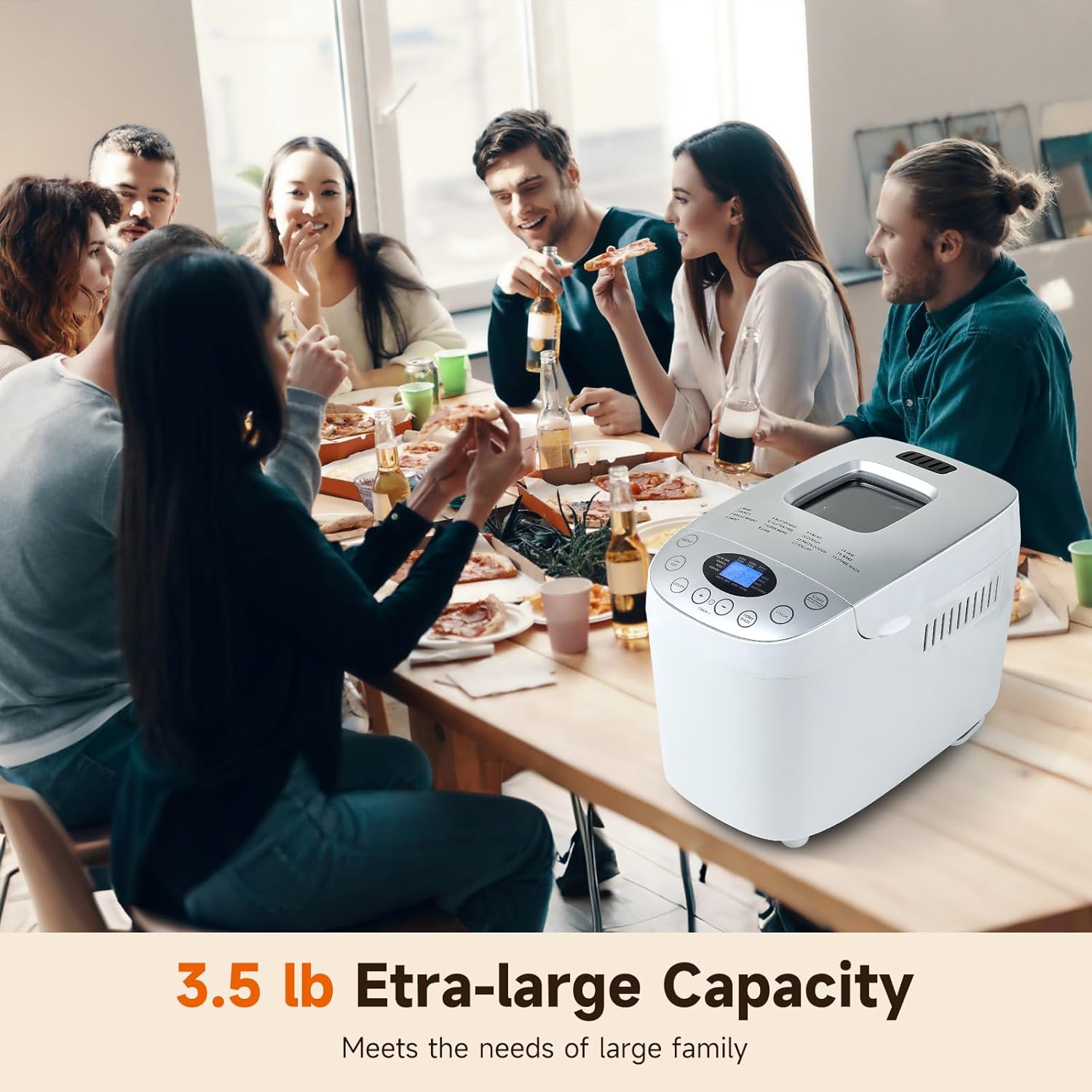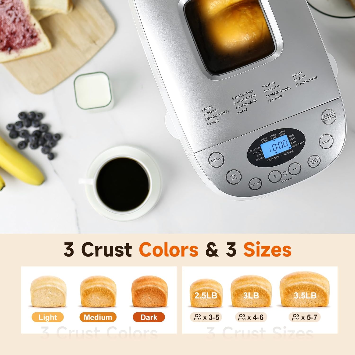Davivy Bread Maker Machine 3.3LB Dough Maker,15-in-1 Automatic Bread Machine Maker with Nonstick Bowl, Jam& Yogurt, 3 Loaf Sizes and 3 crust settings,15-H Delay Timer(850W,Silver,3.3LB) (3.5LB)