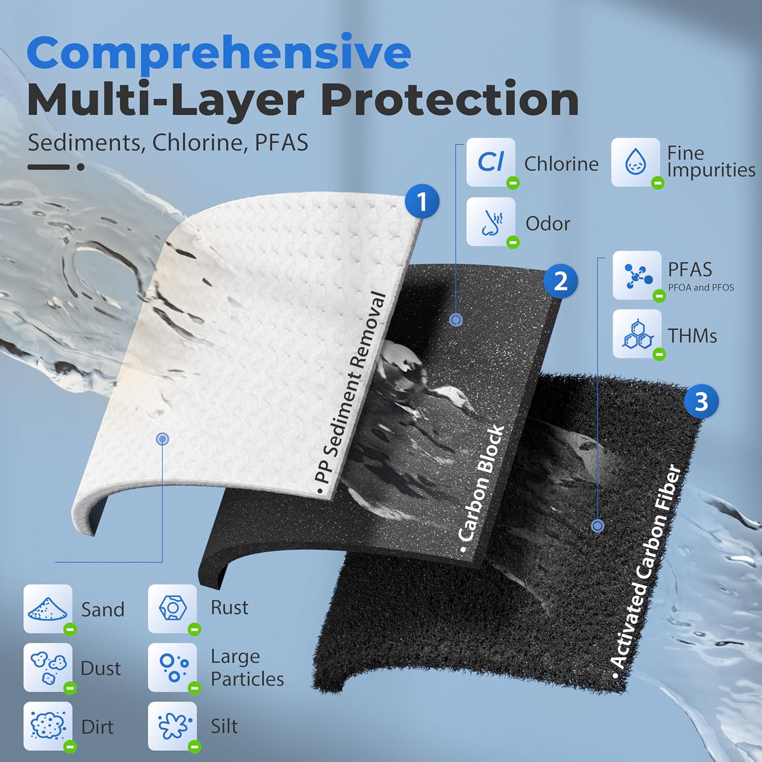 • Peace of Mind Guaranteed – Supported by a 1-year limited warranty and lifetime technical support from our U.S.-based customer service team. Whether you're purchasing your first whole house water filtration system or replacing your current home water filter, we're here to help—before and after your purchase.