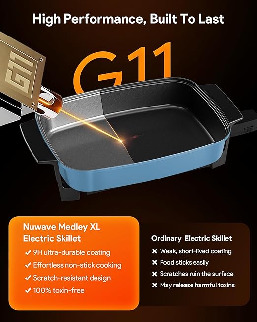 • A HEALTHIER ALTERNATIVE – The Medley’s non-toxic, scratch-resistant G11 Duralon ceramic cooking surface is PFAS-free, nonstick, and more durable than traditional coatings. Enjoy healthier meals and easy cleanup without the concern of bubbling or peeling.