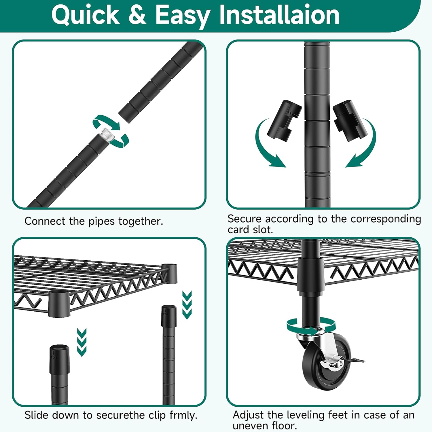 • EFFORTLESS ASSEMBLY: Wave goodbye to the hassle of tools. Simply follow the instructions provided, and you'll have your metal shelving ready in no time, effortlessly combining convenience with simplicity.