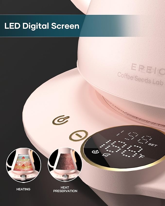 Gooseneck Electric Kettle with ±1℉ Temperature Control for Pour Over Coffee & Tea, Quick Heating, BPA-Free Stainless Steel, Built-in Brew Timer, 1500W/0.9L (Petal Pink)