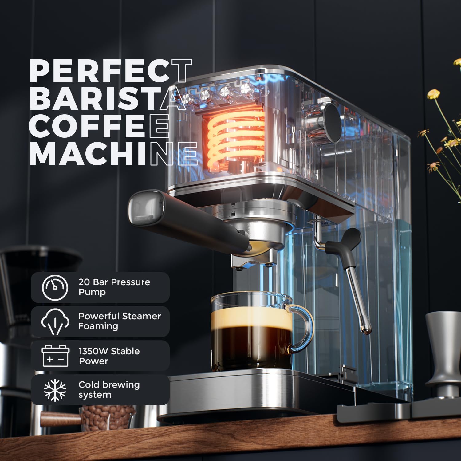 • 20-Bar Professional Pressure & Pre-Infusion: Enjoy barista-level espresso with rich crema. Our system soaks grounds first for full flavor extraction, making every cup aromatic and robust.