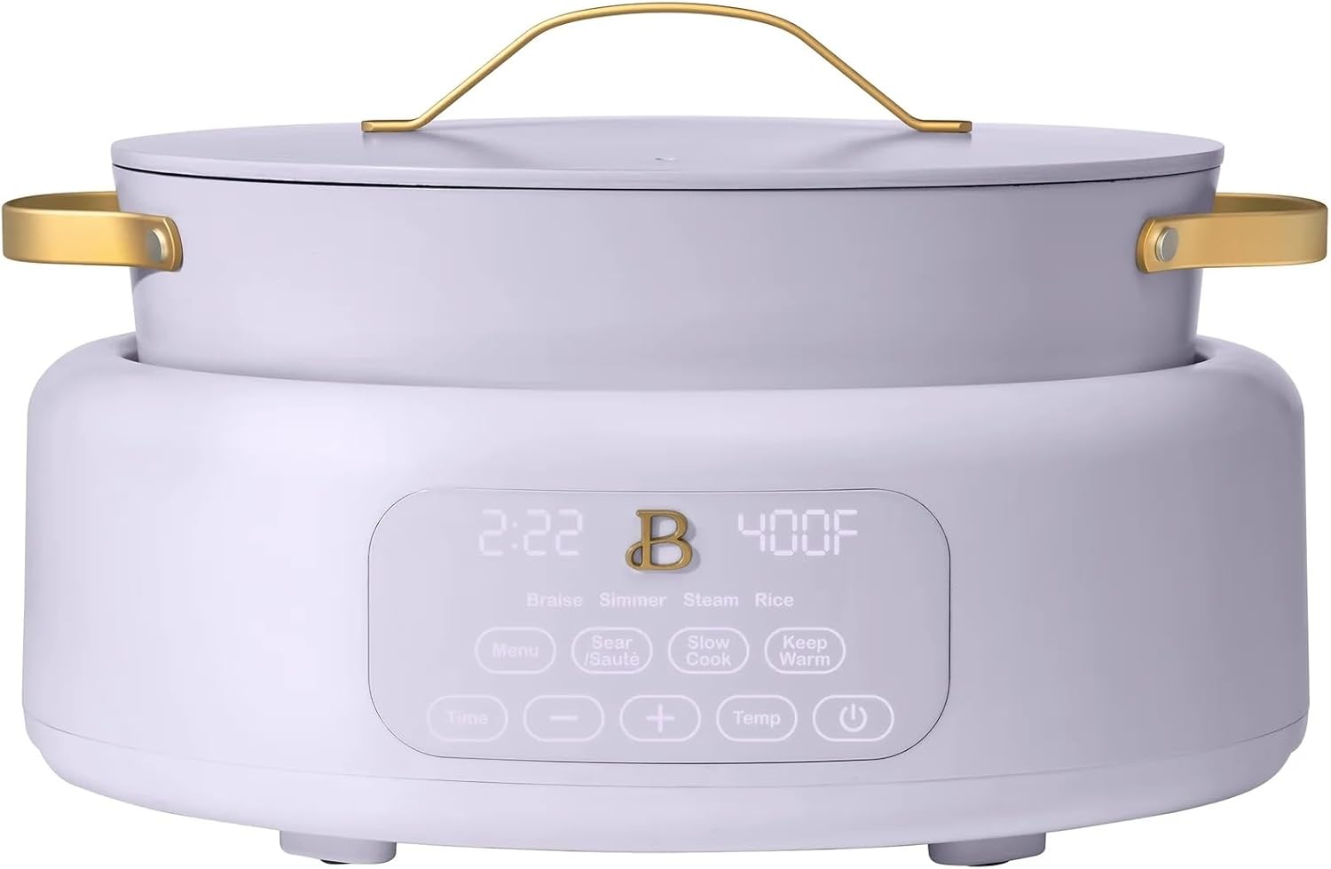 Beautiful 10-in-1 Electric Multi-Cooker by Drew Barrymore, 6-quart, digital display, 10 cooking functions, non-stick pot, easy one-touch control (Lavender)