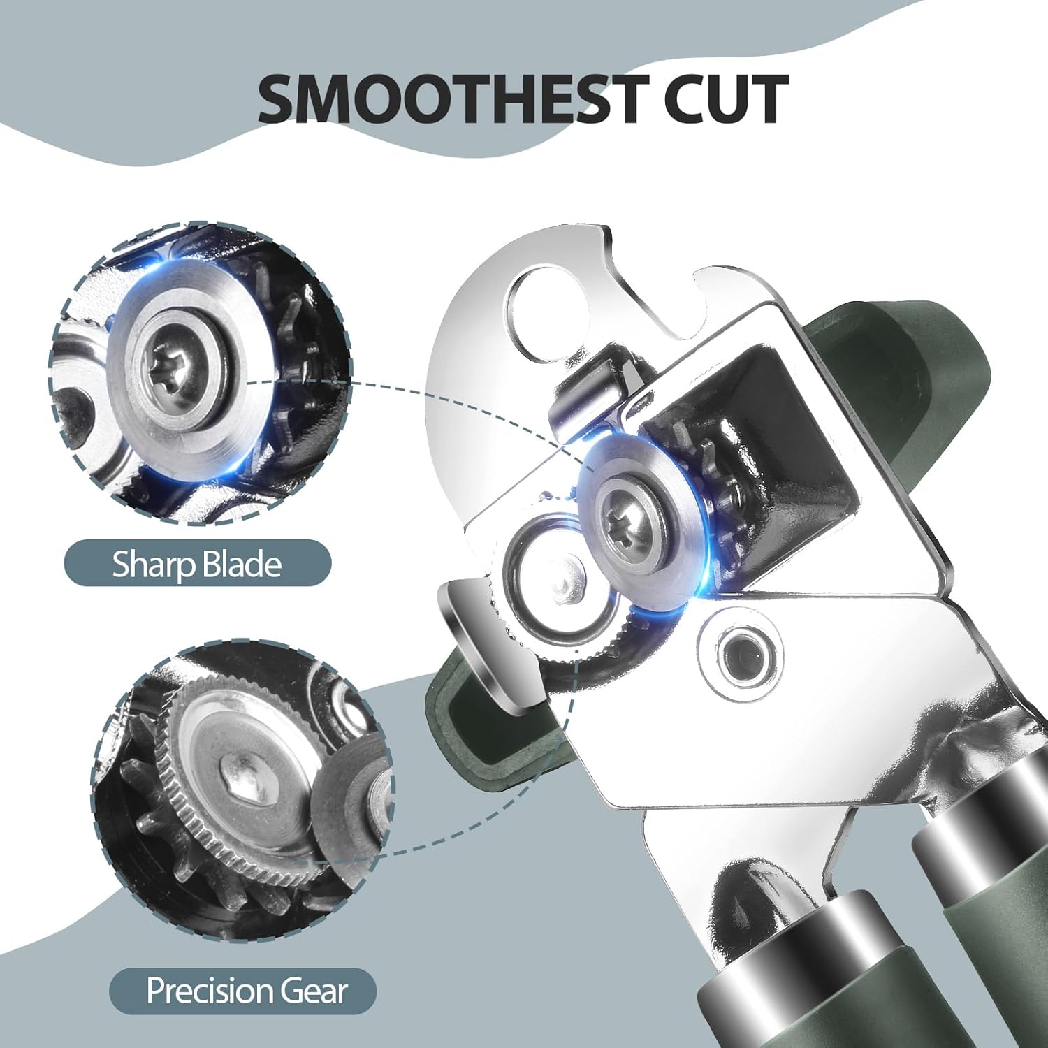 Can Opener Manual, Heavy Duty Handheld Strong Can Opener with Soft Touch Handle, Sharp Blade Smooth Edge, Can Openers with Multifunctional Bottle Opener, Hunter Green