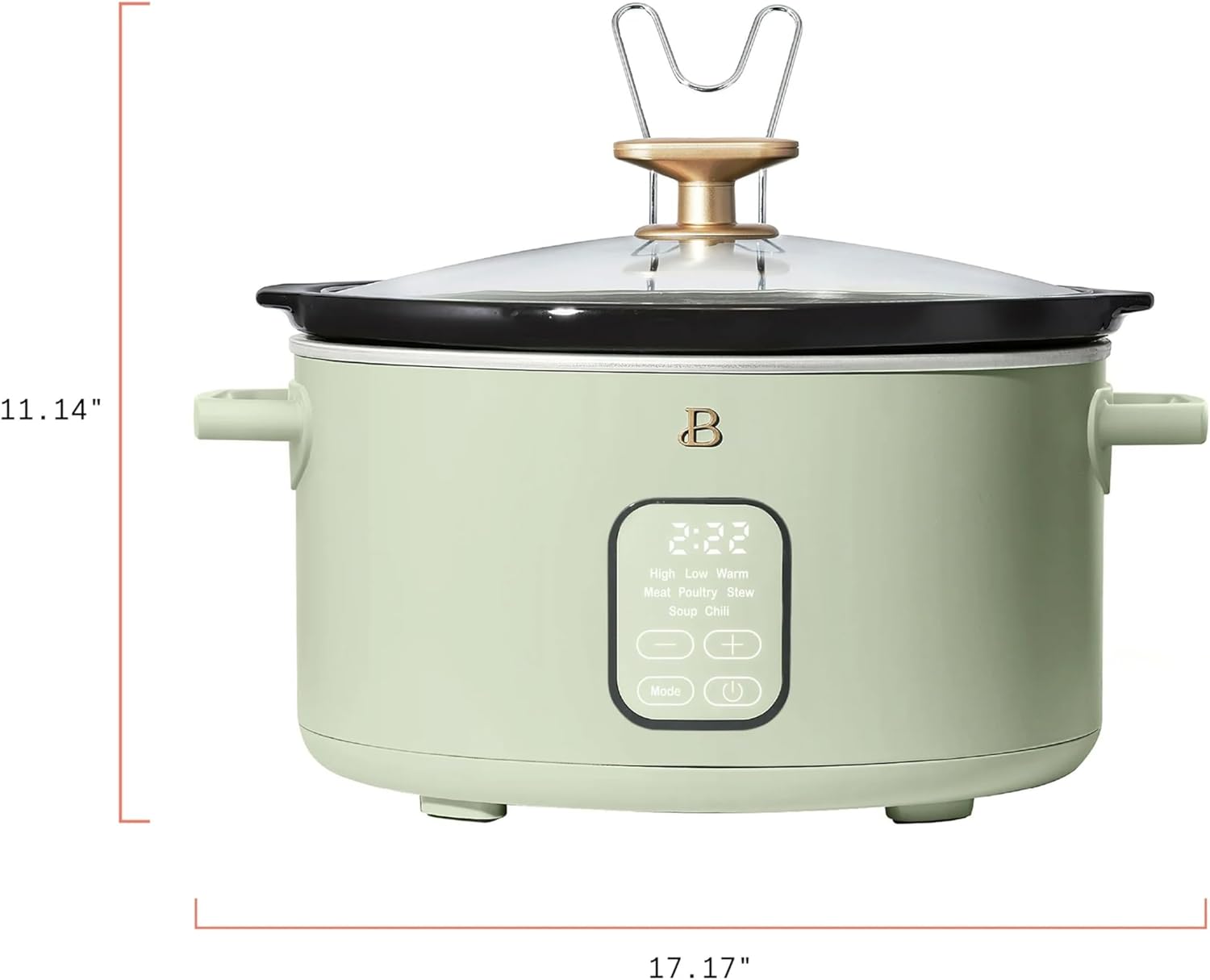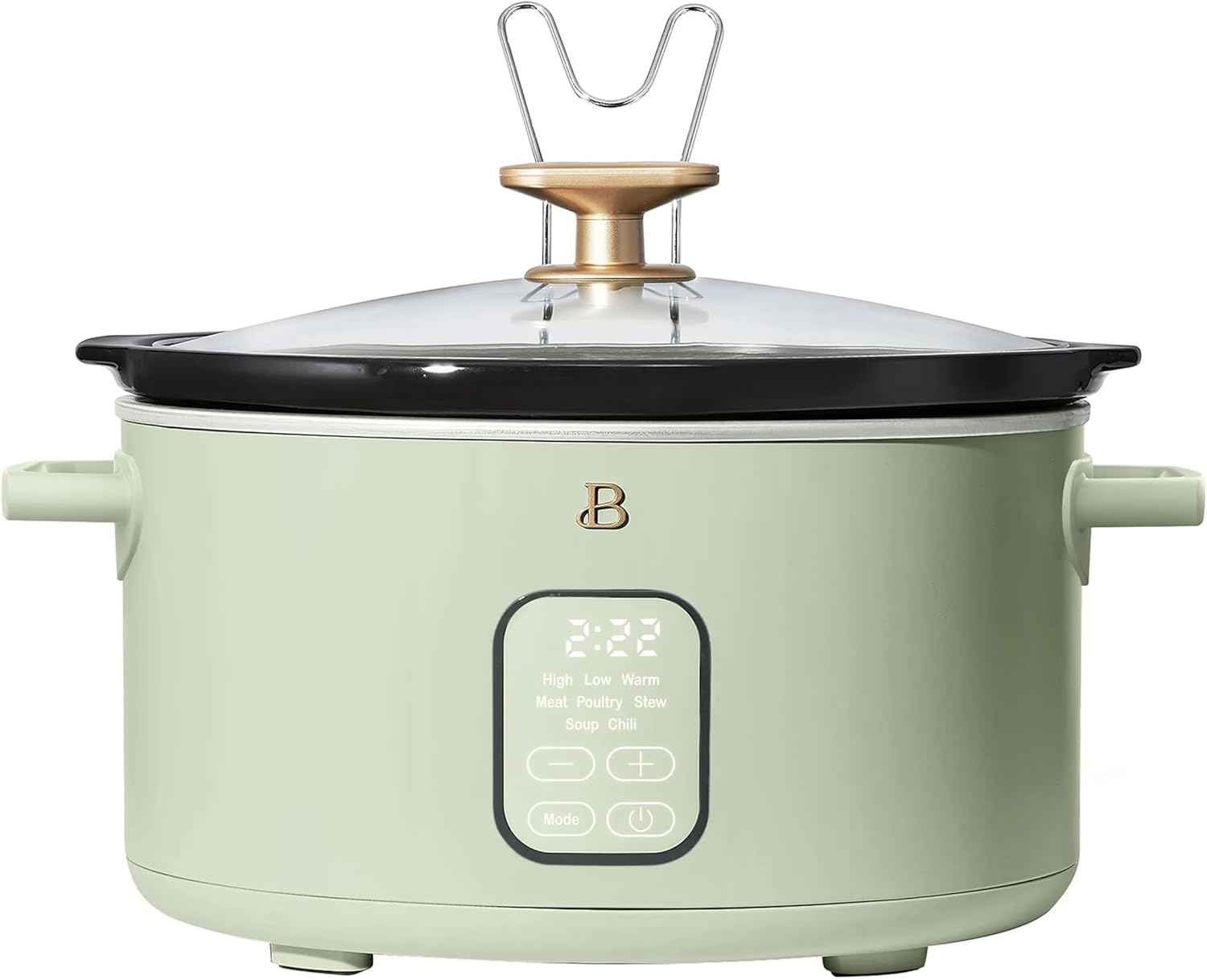 Beautiful 6 Qt Programmable Slow Cooker by Drew Barrymore - 5 Preset Cooking Functions, Digital Countdown Timer, Dishwasher-Safe Parts, and Cool-Touch Handles (Sage Green.)