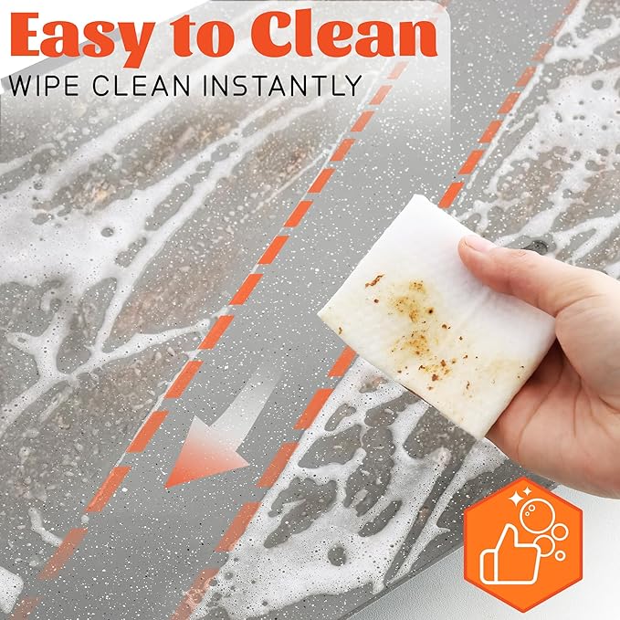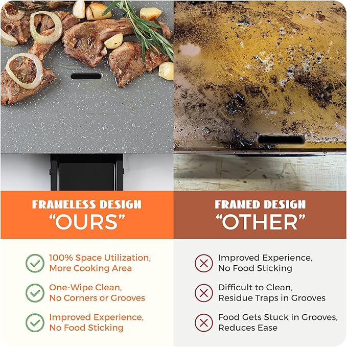 • Effortless Cleaning: The frameless, borderless design prevents grease buildup, while the nonstick surface wipes clean in seconds — no scrubbing required