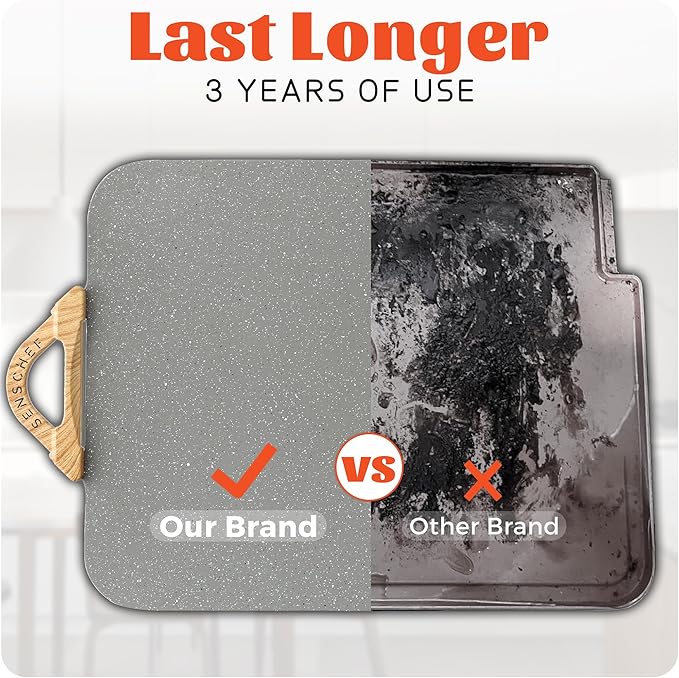 • Perfect for Large Gatherings: Designed to serve up to 10 people, this extra-large griddle is your all-in-one solution for family meals, meal prep, or party platters — your ultimate kitchen companion